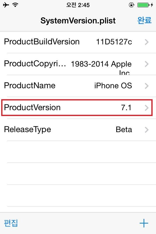 11D5127c로 적혀있는 빌드넘버를 11B554a로 수정합니다. 참고로 11B554a는 iOS7.0.4 정식버전의 빌드넘버입니다.