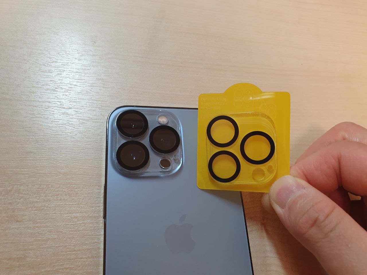 위 사진은 카메라 보호필름을 부착한 사진입니다. 이번 아이폰13프로는 카메라가 커지고 더욱 튀어나와서 부담스러운데요. 카메라보호필름을 붙이니까 정말 부각 되더라구요. 그래서 케이스를 씌우면 케이스보다 카메라가 더 튀어나오지 않을까? 걱정이 되었는데, 다행히 케이스보다 카메라 부분이 아~~~주 살짝 들어가서 다행이었습니다.^^;; 아래 사진으로 제가 말한 부분이 잘 보일까 모르겠네요.^^;; 카메라보호필름의 가격은 배송비 포함 $4.58에 구입했습니다.(필름은 3장 들어 있었습니다.)