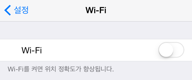 4. 와이파이를 사용 중이라면 설정>Wi-Fi에서 Wi-Fi 버튼을 끕니다.