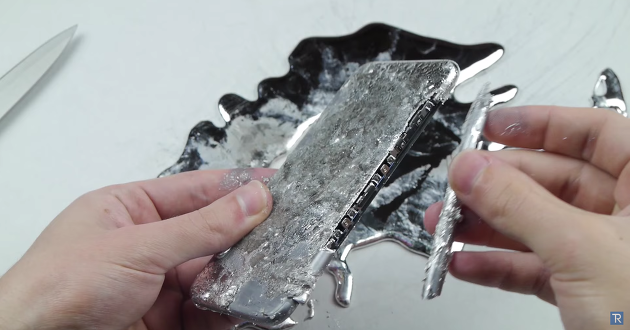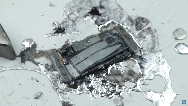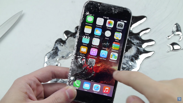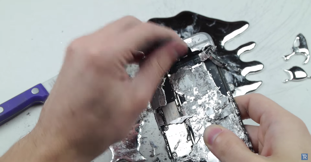 이런 갈륨을 아이폰6에 부으면 어떻게 될까요? 아래는 TechRax의 유튜브 영상 캡쳐화면입니다.