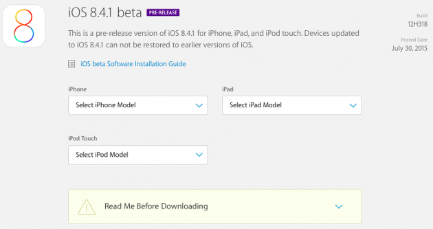 2015년 7월 31일 새벽 2시, iOS 8.4.1 베타2 버전이 공개되었습니다. iOS8.4.1 베타1을 공개한지 약 2주만인데요. 오늘 배포된 iOS 8.4.1 Beta 2 빌드넘버는 12H318 이며, 업데이트할 수 있는 애플 기기는 아래와 같습니다.