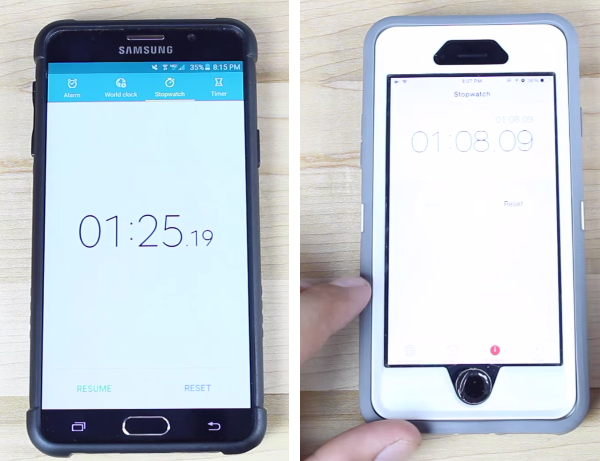 삼성이 새롭게 공개한 옥타코어 4GB 램의 갤럭시 노트5는 얼마나 빠를까요? 유튜브 채널 DroidModderX가 듀얼코어 1GB 램의 아이폰6와 속도대결을 해봤는데요. 시계 앱으로 초시계를 실행한 후 캘린더, 메일, 앱스토어(구글플레이스토어), 카메라, 페이스북, 트위터, 앵그리버드, Espn 웹페이지를 모두 완벽히 실행하기까지의 시간을 재는 대결입니다.