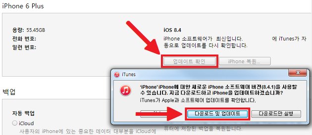 컴퓨터에 애플 기기를 연결한 다음 아이튠즈에서 Shift + 업데이트 확인을 클릭합니다. 그리고 위에서 다운받은 펌웨어를 선택하면 업데이트가 진행됩니다.