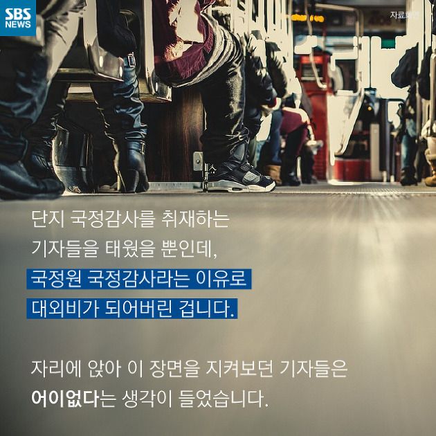 국가정보원은 국가의 정보활동에 관한 기본정책을 수립하고 집행하는 대통령 직속의 국가 최고정보기관으로, 줄여서 국정원이라 부르기도 합니다. 최근 SBS의 기자가 1년에 딱 한번 기자들에게 문을 연다는 국정감사 때 국정원을 취재하면서 겪은 경험담 하나를 카드뉴스로 소개했는데요. 제목은 "국정원의 묻지마 버스" 입니다. 뭘 묻지마냐구요? 아래의 내용을 읽어보세요.