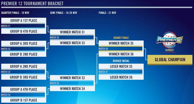 프리미어 12는 대회 명칭에서 알 수 있듯이 국제야구연맹(IBAF) 랭킹 상위 12개 국가가 참가하게 되며, 두 개의 조별리그로 진행됩니다.(참고)