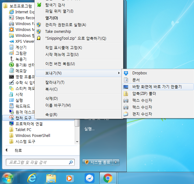컴퓨터 화면 부분캡쳐를 자주 이용하신다면 캡처 도구를 아래와 같이 바탕화면에 바로 가기 만들기 해 놓으면 쉽고 편리하게 화면 부분캡쳐를 할 수 있습니다.