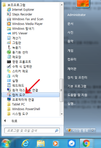 윈도우에서 Ctrl + Print Screen Sys Rq 키를 동시에 누르면 전체 화면이 스크린 캡쳐 되는 것은 알고 계실겁니다. 그러나 부분 캡쳐하는 방법도 있는데요. 윈도우 시작버튼을 누르고 보조프로그램 안에 있는 캡처 도구를 실행하면 원하는 화면만 부분캡처를 할 수 있습니다.