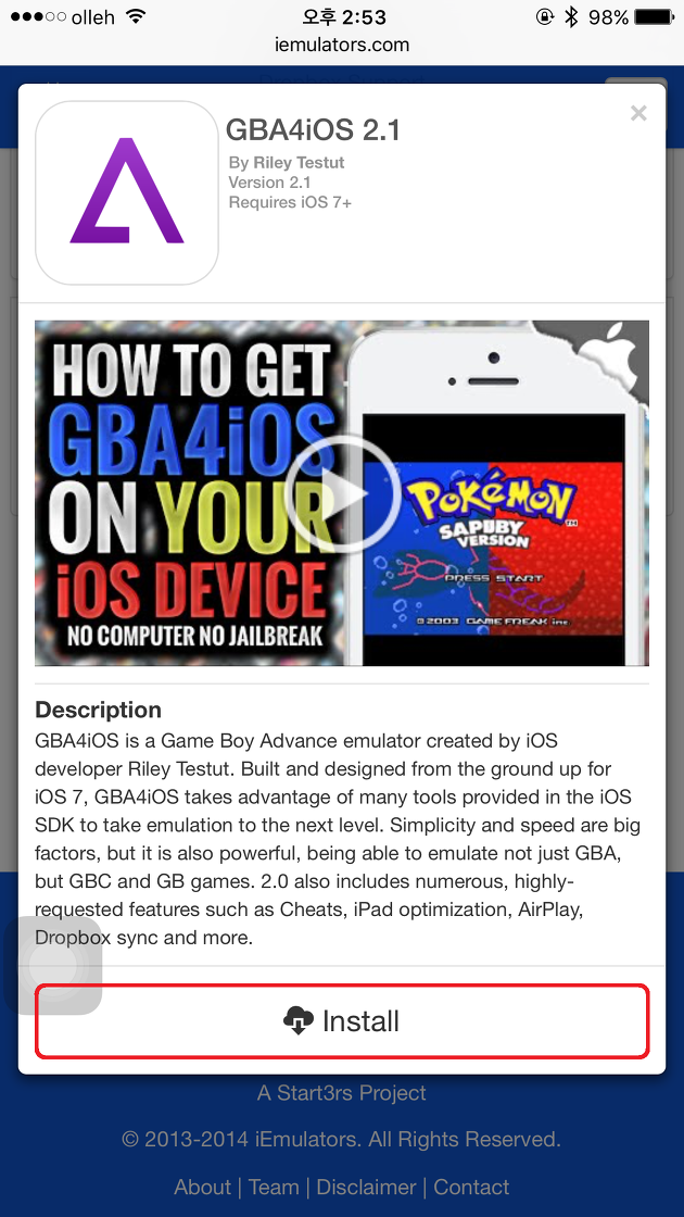 iemulators.com에서 iOS 9.1 호환 GBA4iOS 에뮬 앱 설치하기 |