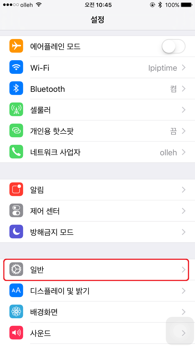 Step2. 아래 그림과 같이 일반을 터치합니다.