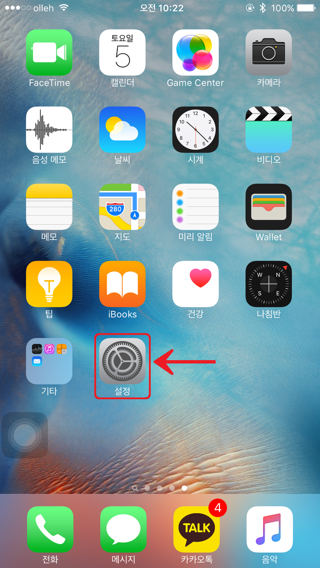 Step1. 홈화면의 설정 앱을 터치합니다.