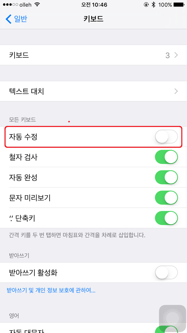 ■ 아이폰 단어 자동 완성(자동 수정) 기능 끄는 방법
