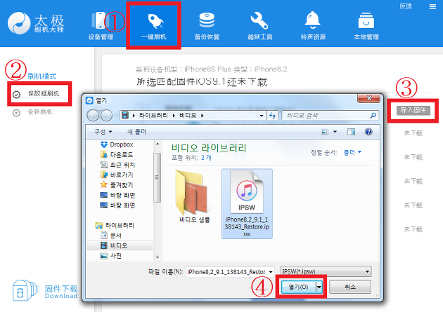 Step2. 아래의 링크에서 다운그레이드할 기기의 iOS 9.1 버전 펌웨어 파일을 다운로드 받습니다.