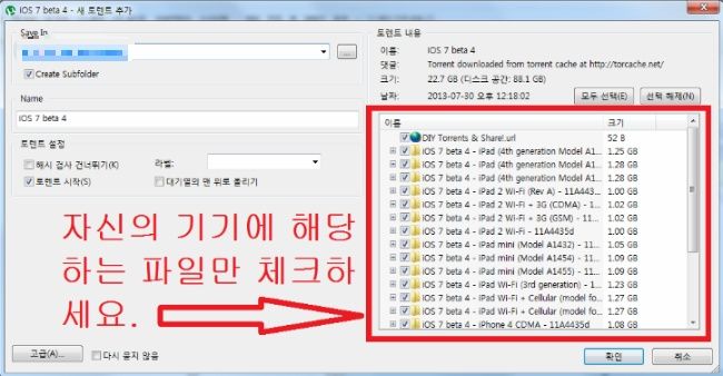 위 토렌트 파일을 다운받아 실행하면 아래 그림과 같은 화면이 나옵니다. 빨간네모박스 안에서 자신의 기기에 해당하는 펌웨어만 체크하고 다운받으세요.