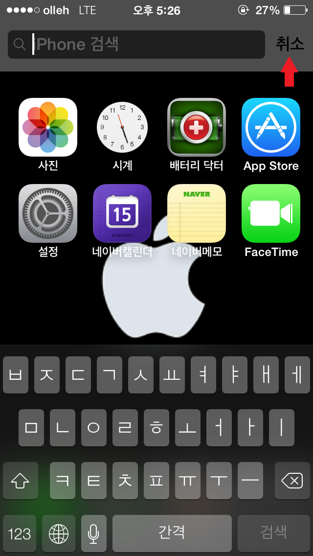 Spotlight에서 검색창 우측에 취소 버튼이 생겼습니다. Spotlight를 이용해 검색을 했다가 다른 내용을 다시 검색할때나 Spotlight를 종료할 때 사용됩니다.