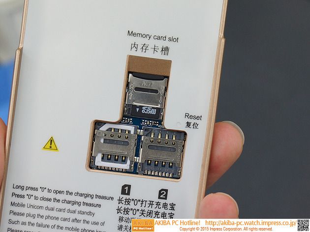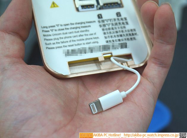 케이스 안쪽에는 2개의 마이크로 심(SIM) 슬롯과 1개의 마이크로 SD 메모리 카드 슬롯이 있으며, 라이트닝 케이블이 내장되어 있는게 특징입니다.
