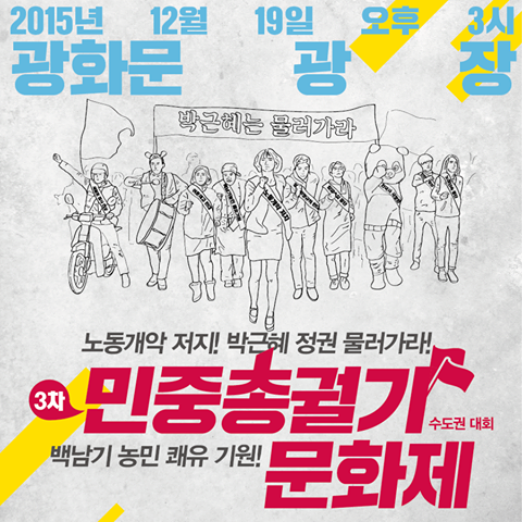 12월 19일은 전국 '3차 민중총궐기 문화제'가 있는 날이자 박ㄹ혜 당선 3년 되는 날