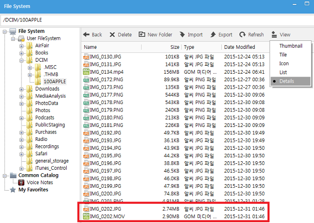 여기서 Step1에서 촬영한 라이브포토를 찾아야 합니다. 그래서 아까 촬영한 날짜 및 시각을 기억하라고 했는데요. 날짜 및 시각을 보기 위해서는 아래 그림처럼 View>Details로 설정하면 됩니다.