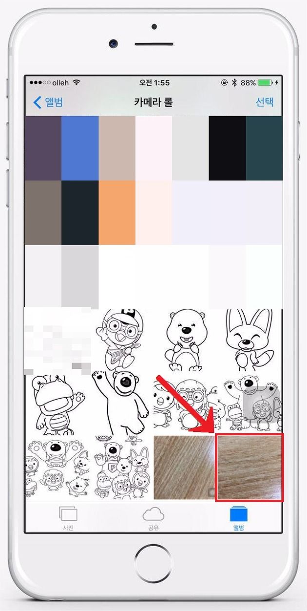 Step3. 라이브포토로 변경할 영상이 아이폰에 있다면 영상 중 맘에 드는 장면을 홈버튼과 전원버튼을 동시에 눌러 화면 캡쳐하고 영상과 함께 PC로 복사합니다.