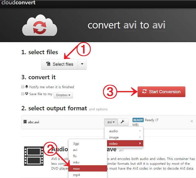 Step4. 라이브포토로 변경할 영상의 파일 확장자명이 'MOV 또는 MP4가 아닌 다른 것'(wmv, avi 등등)이거나 'GIF 파일'이라면 아래의 웹사이트를 이용해 MOV 파일로 변환합니다. MOV로 변환하는 이유는 라이브포토의 파일 형식이 MOV이기 때문입니다.