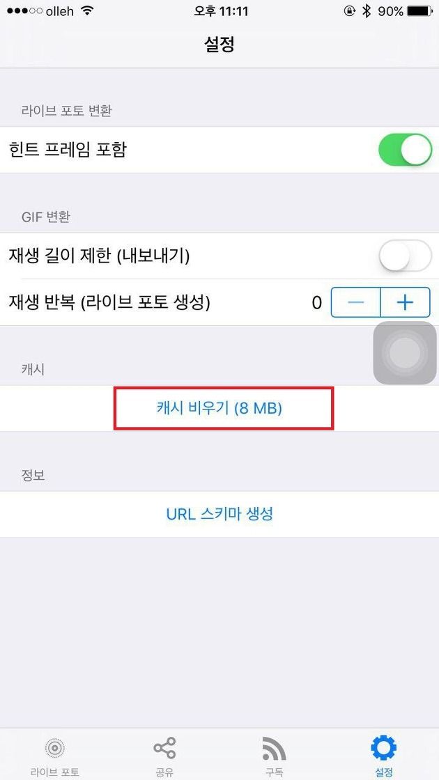 쉐어 라이브로 작업을 많이 하다 보면 캐시 데이터가 많이 쌓이게 되는데요. 이 용량이 꽤 됩니다. 이것을 자주 비워주는 것이 아이폰 저장공간을 효율적으로 사용하는데 도움이 됩니다.^^