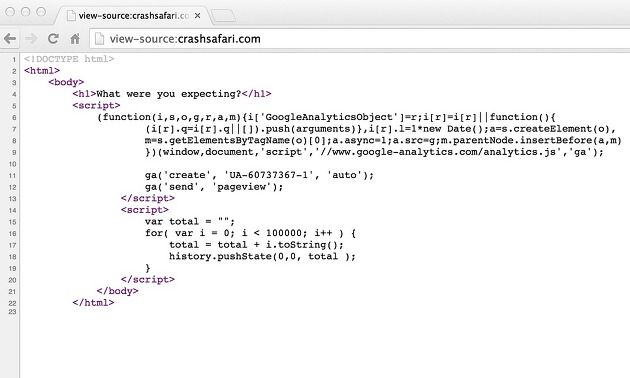단순히 기기의 메모리 과다 사용을 유도하는 웹 사이트일 뿐, 아무것도 볼 것은 없습니다. 이런 크래시사파리 링크는 '단축 주소로 변형되어 나에게도 올 수 있으니' 단축 주소 클릭에도 주의를 해야겠습니다.