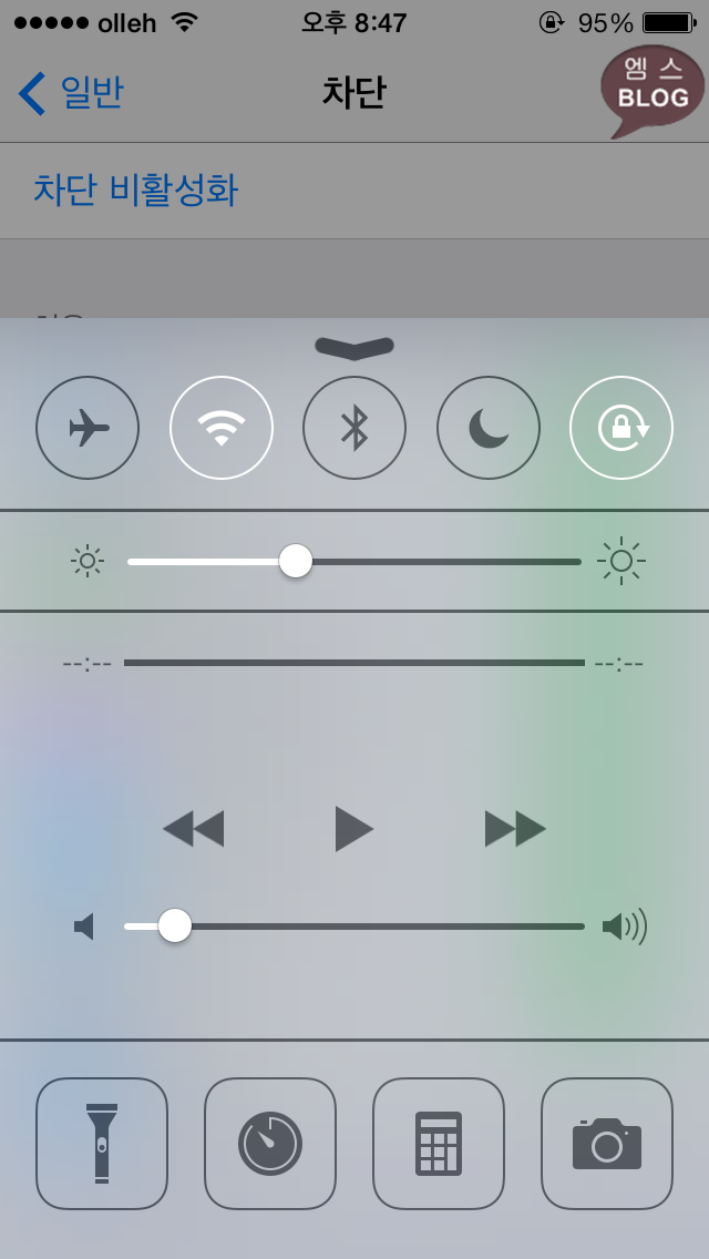 아이폰 펌웨어 버전이 iOS7으로 업데이트 되면서 새로 생긴 기능! 바로 제어센터(컨트롤센터) 입니다.