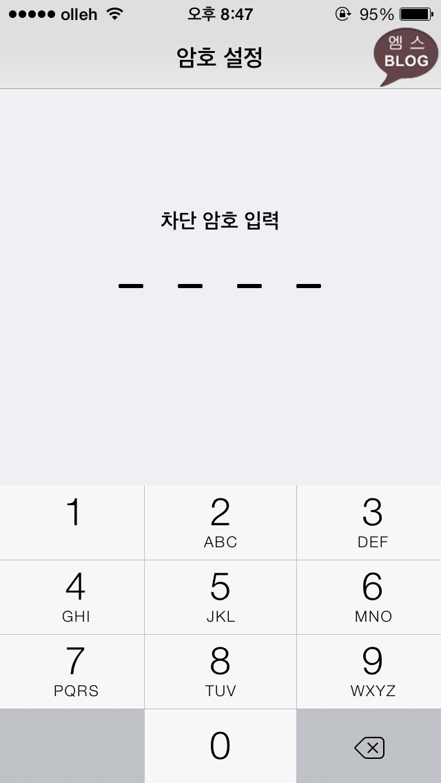 차단 활성화를 눌러줍니다. 그러면 차단 암호를 만드는 화면이 나옵니다.