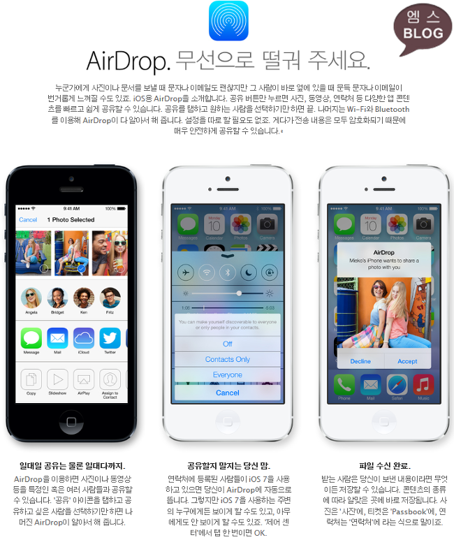에어드롭(AirDrop)이란? iOS 기기 간 공유 버튼을 눌러 사진, 동영상, 연락처 등 다양한 앱 컨텐츠를 빠르고 쉽게 공유할 수 있게 하는 기능