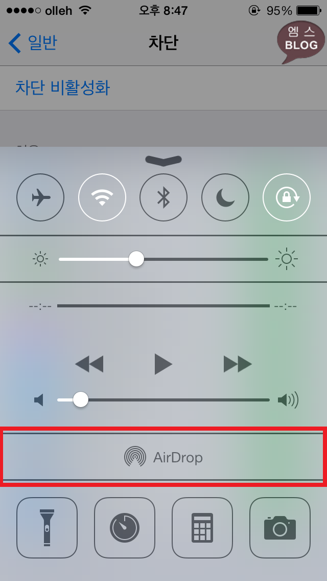 아이폰 제어센터(컨트롤센터)에서 에어드롭 없애기