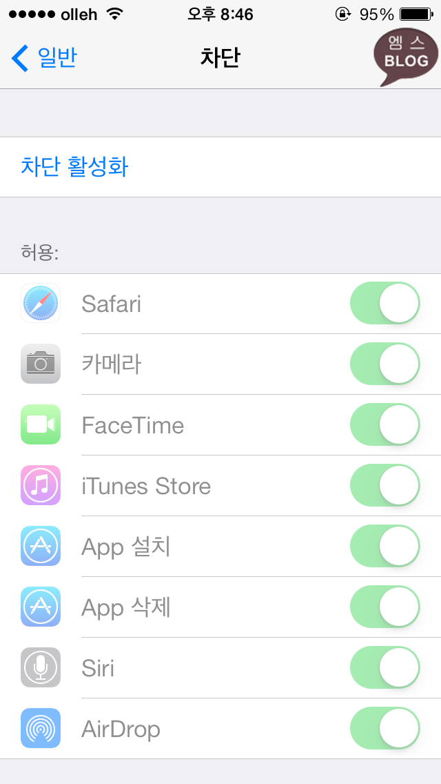 아이폰의 설정-일반-차단으로 들어갑니다.