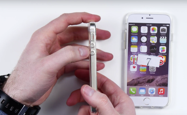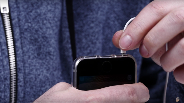 두번째는 아이폰7 하단에는 이어폰 잭이 사라질 수 있다는 점 입니다. 아이폰6s를 유출된 아이폰7 케이스에 끼운 후 이어폰 잭을 꽂아 봤더니 제대로 삽입되지 않는 것을 볼 수 있었는데요. 이 역시 그동안 나온 루머에서 나왔던 얘기와 일치하는 부분이었습니다.