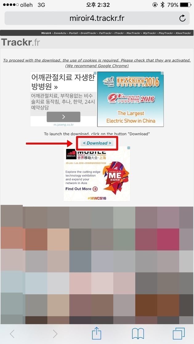 ①아이폰에서 위 링크 터치 → ②화면 중앙의 <Download> 터치 → ③기기 선택 팝업창에서 iPhone 터치