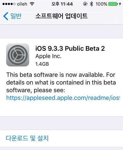 iOS 9.3.3 퍼블릭 베타2 배포 및 업데이트 방법