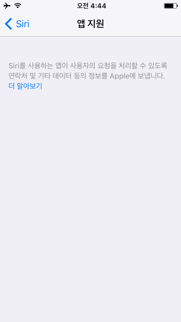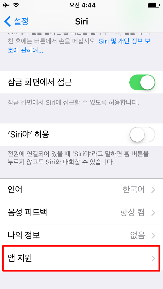 아이폰의 설정>Siri에 앱 지원 메뉴가 새로 생겼습니다. 앞으로 써드 파티 앱에서 Siri를 사용할 수 있게 될 것으로 보입니다.