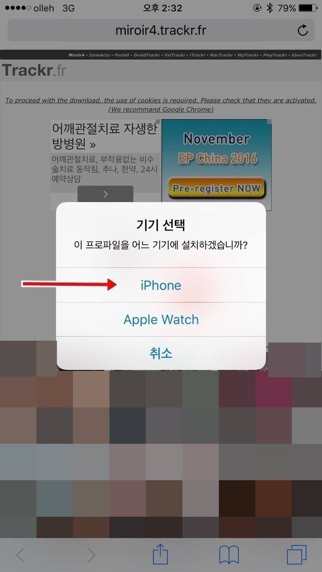 ①아이폰에서 위 링크 터치 → ②화면 중앙의 <Download> 터치 → ③기기 선택 팝업창에서 iPhone 터치