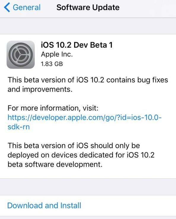 iOS Beta Software Profile을 설치하면 설정>일반>소프트웨어 업데이트에서 iOS 10.2 퍼블릭 베타1 버전으로 업데이트 할 수 있습니다. 자세한 방법은 아래의 링크를 참고하기 바랍니다.