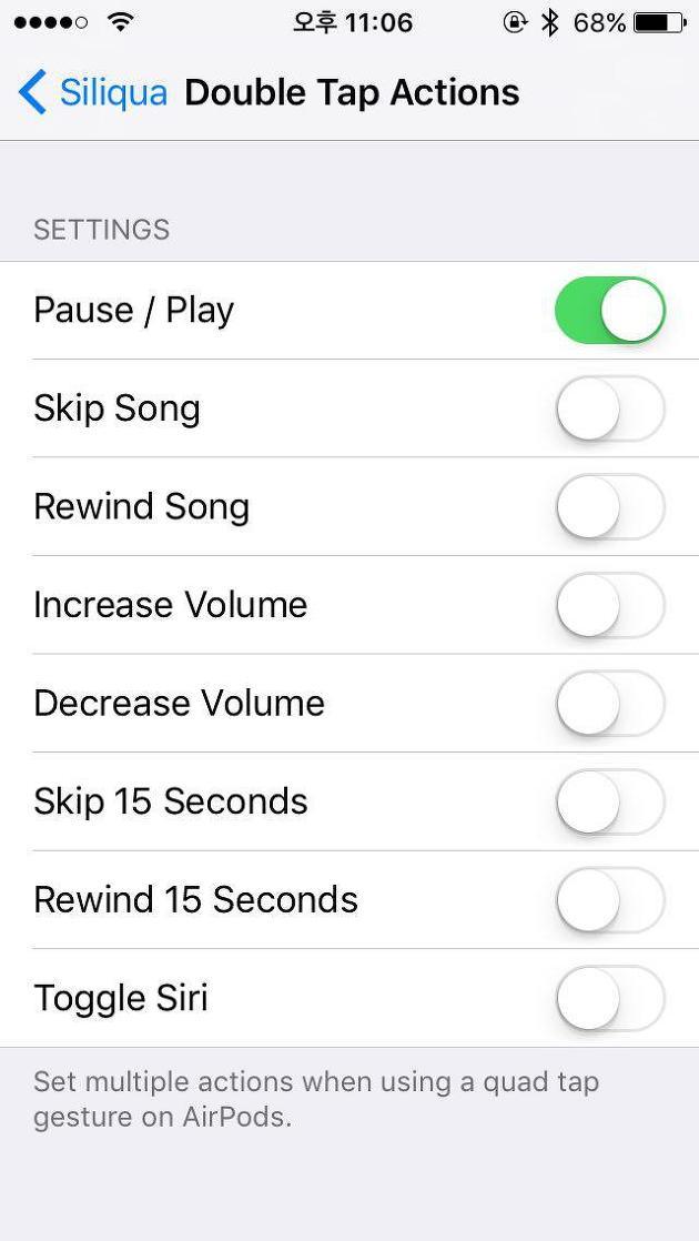 Siliqua-에어팟의 이중탭 기능을 확장해 주는 시디아 트윅 [iOS 10]
