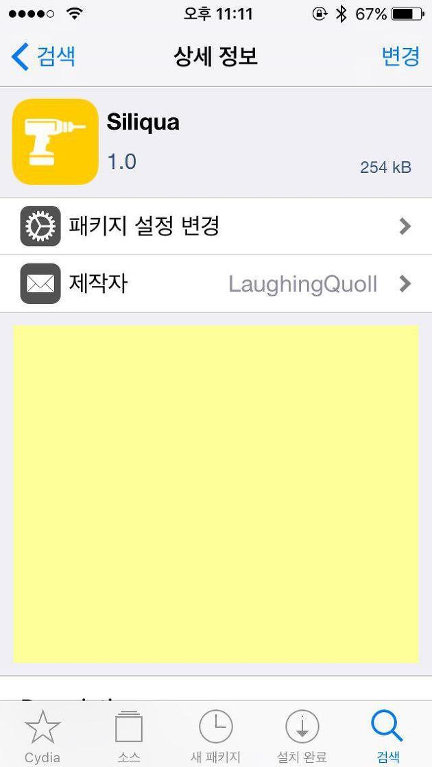 천천히 트윅에 대해 살펴보도록 하겠습니다. ^^ 우선 아이폰에서 시디아를 실행한 후 Siliqua 트윅을 검색해 설치합니다.
