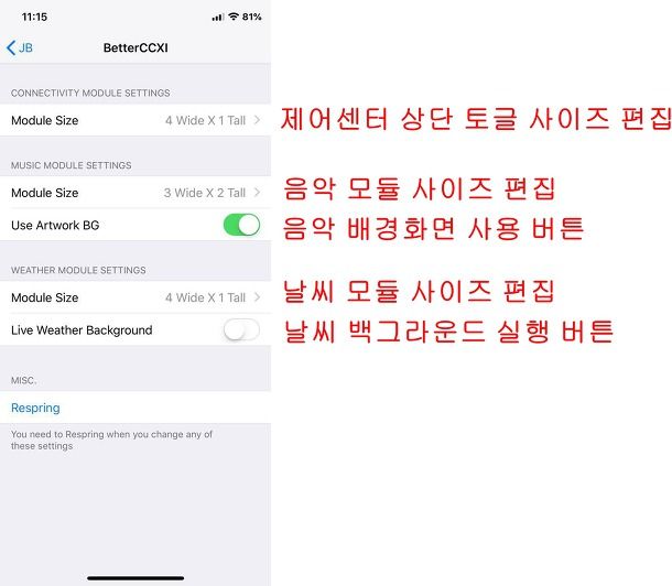 BetterCCXI 트윅 외에도 제어센터 기능 확장 트윅으로는 CCModules 라는 무료 트윅도 있으니 참고하세요.^^
