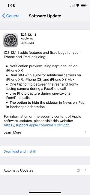 iOS 12.1.1 정식 버전 업데이트 방법 및 내용 정리