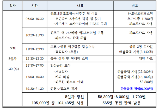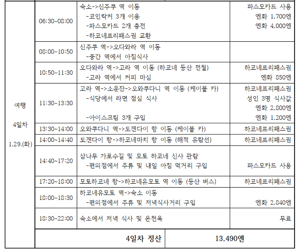 이번 여행에서 가장 힘들었던 점은 숙소를 3군데로 예약을 하고 돌아다니다 보니 매번 짐을 들고 이동해야 했다는 것이다. 큰 캐리어를 끌고 다니는 여행은 정말 큰 실수... 그리고 마지막 날 숙소가 일본 나리타 공항에서 멀리 떨어진 하코네유모토 지역으로 했다는 것도 큰 실수... 숙소에서 공항까지 전철로 약 4시간 넘는 시간이 걸렸다. 중간에 돌발상황도 발생하여 1시간 30분 정도 지연되며 총 5시간 넘게 걸렸다. 여차하면 비행기를 놓칠 뻔 했다.