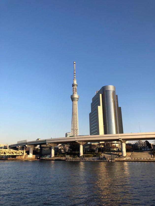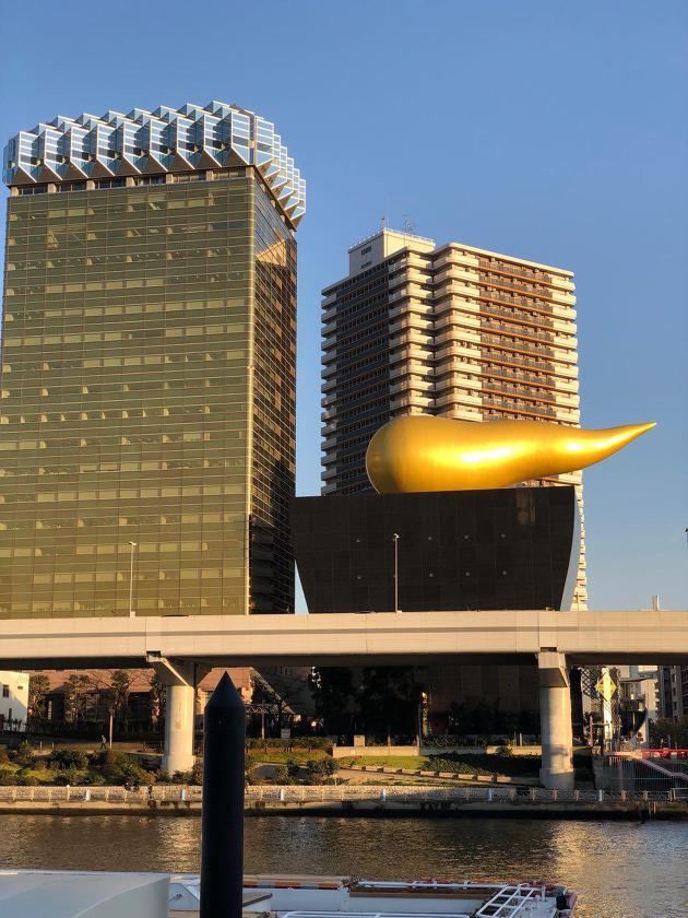 아사쿠사에서 도쿄 스카이 트리 타워까지는 전철역 1정거장. 주변을 구경하며 걸어갔다. 위 사진은 건물 위의 똥 모양 거품으로 유명한 아사히 맥주 공장과 스카이트리 타워..
