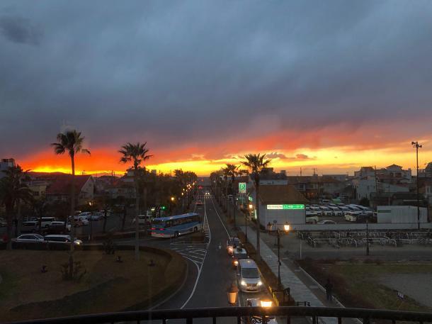 1월 26일 일본 나리타 공항에 도착 후 전철로 다테야마까지 이동. 어느새 시간은 저녁이 되었다. 역 로비에서 바깥 풍경이 너무 예뻐서 사진으로 담아봤다.
