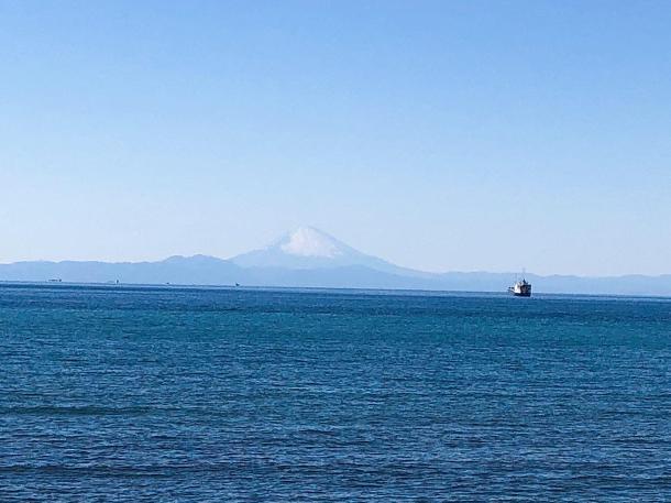 대회 코스는 해안 도로를 따라 뛰기 때문에 옆을 보면 바닷가 풍경을 볼 수 있는 낭만적인 코스였다. 멀리 후지산이 보인다.^^