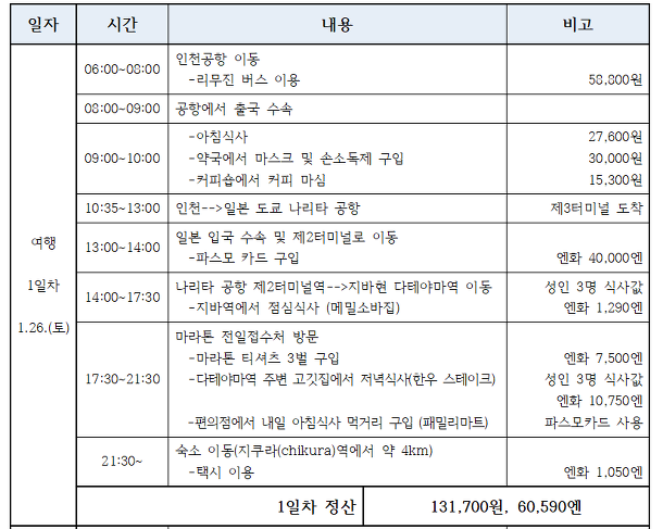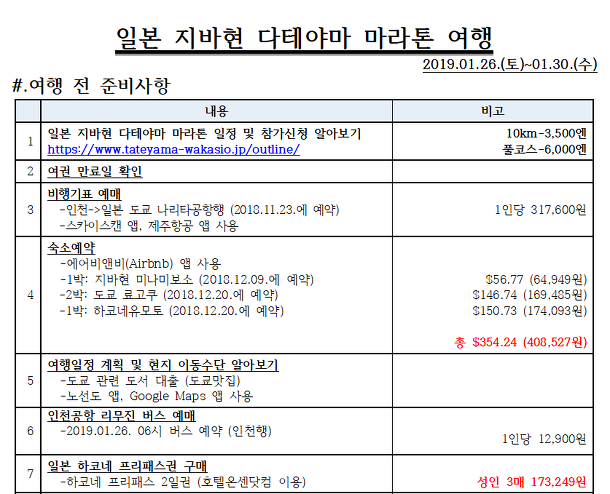 지난 1월 26일부터 30일까지 일본 지바현의 다테야마라는 지역 마라톤 참가를 위해 여행을 갔다 왔다. 해외로 마라톤을 뛰러 간 것은 이번이 처음!