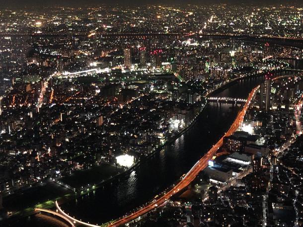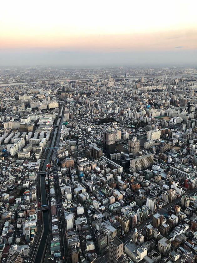 도쿄 스카이 트리에서 내다본 도쿄 시내. 도쿄 시내 전경의 낮과 밤은 또 다른 모습이었다.
