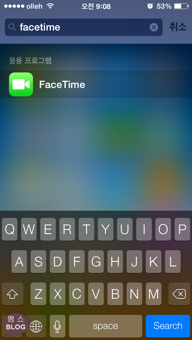 어플이 사라졌다고 해서 어플 자체를 실행 못 시키는 것은 아닙니다. Spotlihgt를 이용해 어플이름을 검색하면 어플을 볼 수 있는데요.