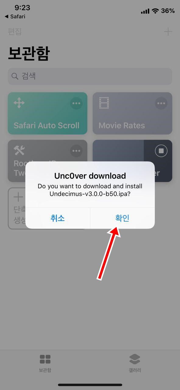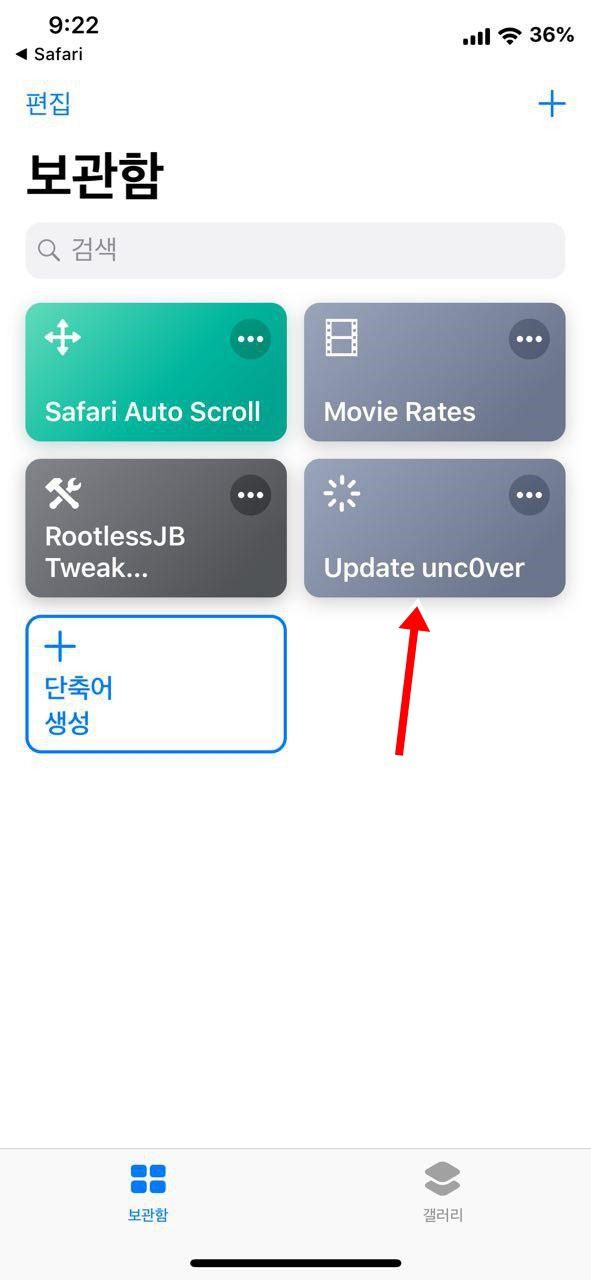 ■ 단축어 앱을 이용한 unc0ver 탈옥툴 업데이트 방법
