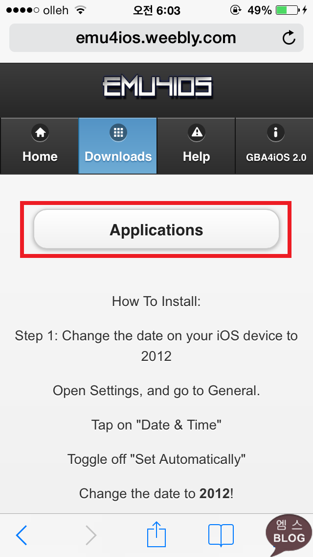 STEP1. 이 어플을 설치하려면 날짜와 시간을 2013년 7월 16일 이전으로 변경해야 합니다. 설정-일반-날짜와 시간으로 들어가 자동으로 설정을 비활성화 한 뒤 날짜와 시간을 변경합니다.