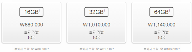 ①16GB 814,000원 ②32GB 946,000원 ③64GB 1,078,000원
